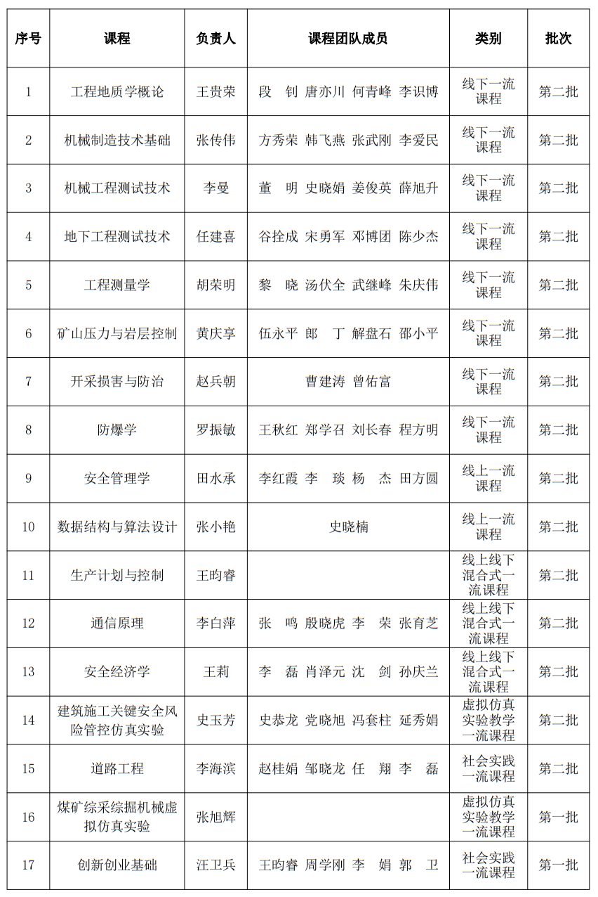 学校全面落实立德树人根本任务,坚持五育并举,近年来出台《002全讯白菜大全一流本科教育行动计划》和《课程建设与课堂教学质量提升计划实施方案》等文件,深入推进以专业为主线“培养方案-课程教材-教学团队-教学方法-考核评价”一体化建设与改革,高度重视优质课程资源建设,强化科教融合,结合科技发展前沿,突出能源、安全等学科优势特色,将学科前沿、科研成果等融入课程建设,建成国家—省—校三级一流课程体系。截至目前,白菜官网立项培育建设了校级一流本科课程108门、省级一流本科课程35门、国家级一流本科课程17门,着力打造具有学科优势和行业特色的“西科金课”,推进学术型人才培养高质量发展。