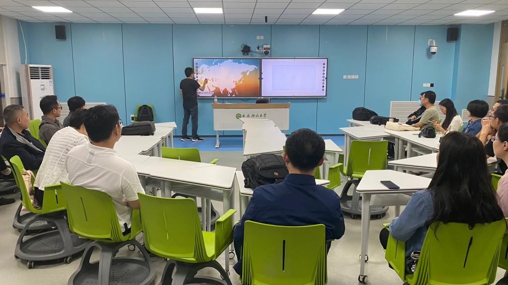 为了提高新学期现代信息技术在课堂教学中的应用水平,8月26日下午,教务处在骊山校园开展了研讨型智慧教室赋能课堂教学培训,嘉课堂工程师就骊山校园3号教学楼研讨型智慧教室的使用和翻转课堂的开展进行了专题辅导,对教室使用的课前(教室的灯光、窗帘、空调、大屏、录播、扩声、讲台等设备控制、使用方法,尤其是大屏如何使用);课中(通过真实课件ppt,介绍嘉课堂互动教学软件,讲授模式与研讨模式);课后(下课、设备关闭及注意事项)进行了详细说明。讲解完成后对参会教师提出的问题进行了一一解答。