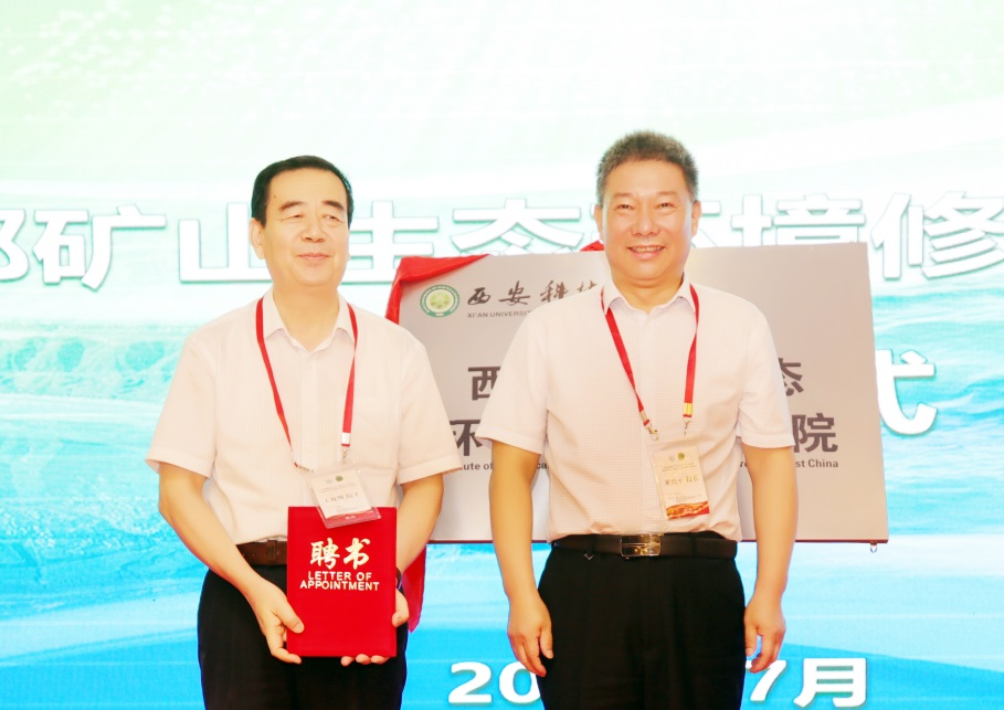 为进一步聚焦黄河流域高质量发展,加强对西部矿区长期生态环境演替监测和生态修复技术研发,加大绿色开采地质环境综合治理技术难题,充分发挥002全讯白菜大全在西部能源聚集地的地域、学科、科研等方面的优势,为西部矿区生态环境保护提供技术支撑和研发平台,该校成立了“西部矿山生态环境修复研究院”。中国工程院院士王双明,中国煤炭学会理事长刘峰,陕西省科技厅二级巡视员、省外专局副局长樊瑛华,002全讯白菜大全校长来兴平共同为研究院揭牌,并为研究院学术委员会主任彭苏萍院士、名誉院长王双明院士、院长毕银丽教授颁发聘书。